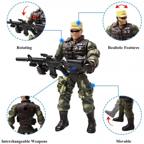 Launch tactical missions into enemy territory and defend your position.These toy soldiers are armed and ready for your next actionable command. Each action figure has moveable arms, legs and head.